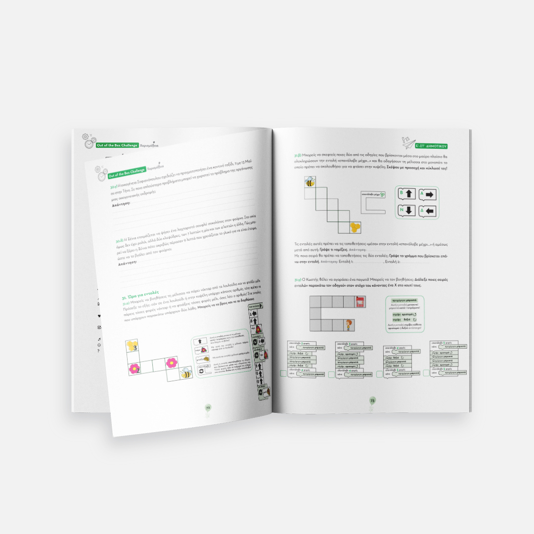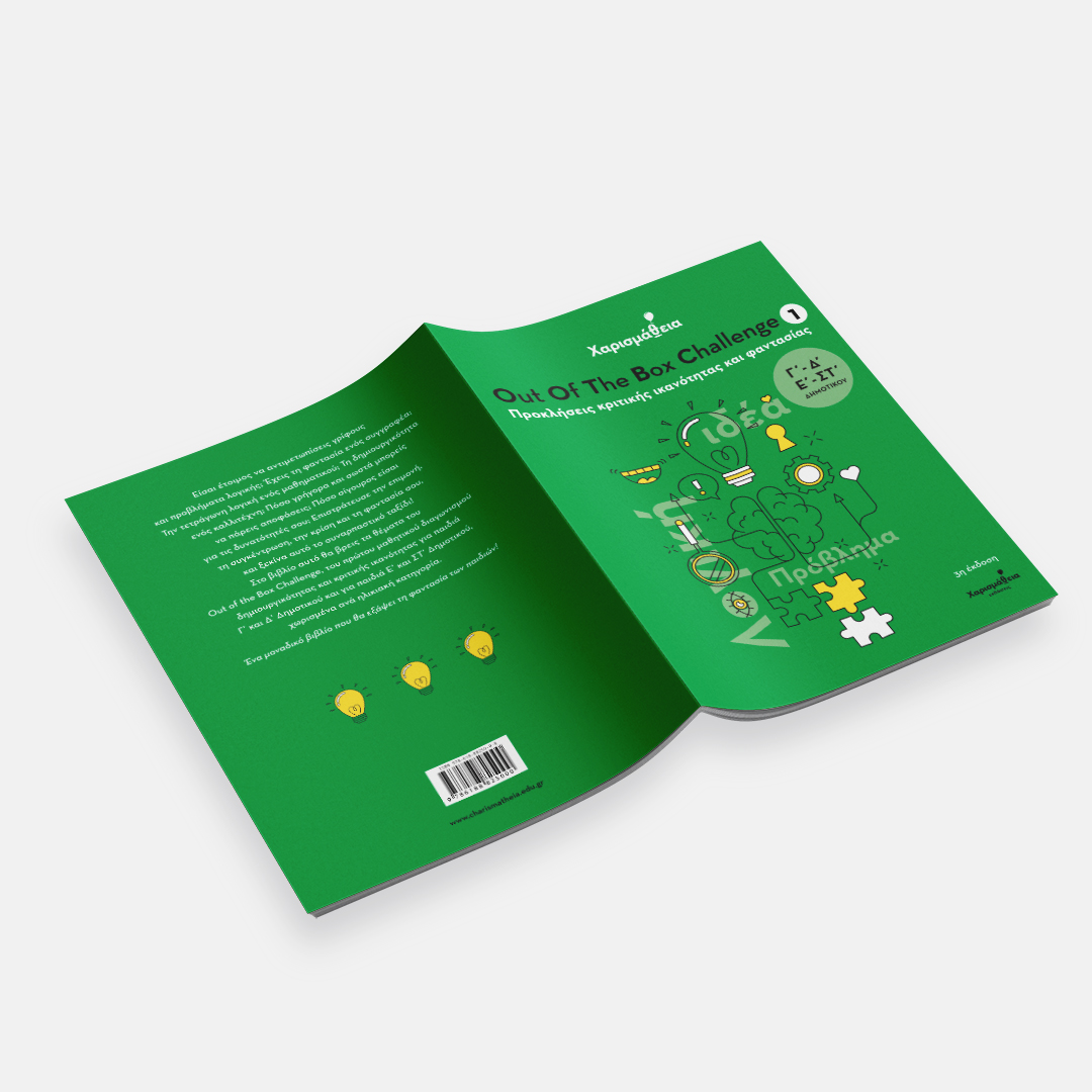 Επιστράτευσε την επιμονή, τη συγκέντρωση, την κρίση και τη φαντασία σου, και ξεκίνα αυτό το συναρπαστικό ταξίδι! Στο βιβλίο αυτό θα βρεις τα θέματα του Out of the Box Challenge, του πρώτου μαθητικού διαγωνισμού δημιουργικότητας και κριτικής ικανότητας για παιδιά Γ΄ και Δ΄ Δημοτικού και για παιδιά Ε΄ και ΣΤ΄ Δημοτικού, χωρισμένα ανά ηλικιακή κατηγορία.